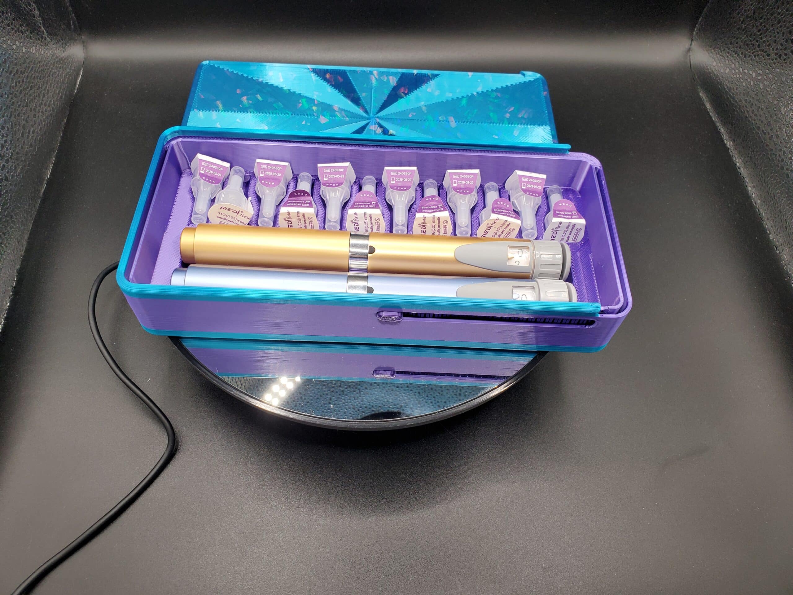 Slide top pen storage box, holds pens up to 160mm (V2 style) and 12 pen needles (not included)